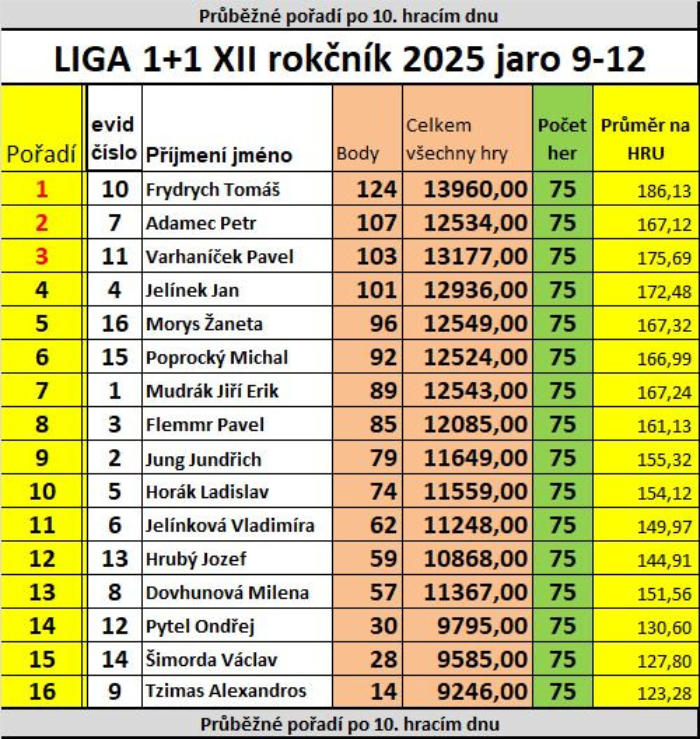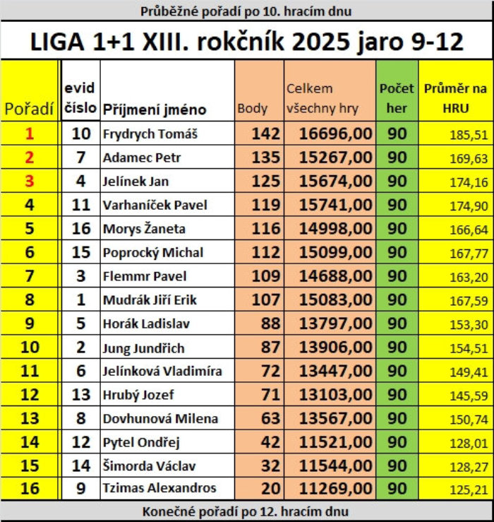 V čele tabulky se nám trvale umístil Tomáš Frydrych