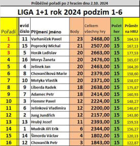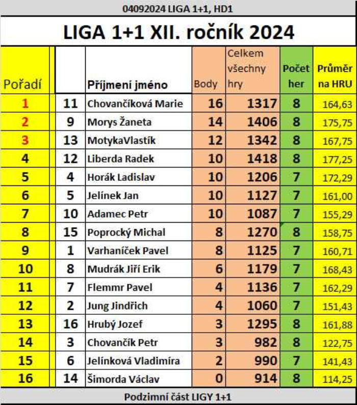 vyhodnocení soutěže LIGA 1+1. Pokud se nebudete moci
