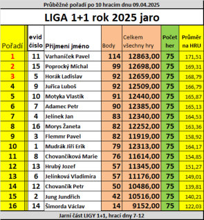 v dosažení průměru na hru. Body zjistíte v tabulce body a průměry.