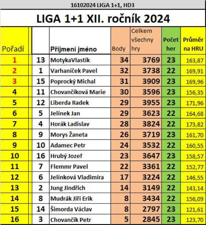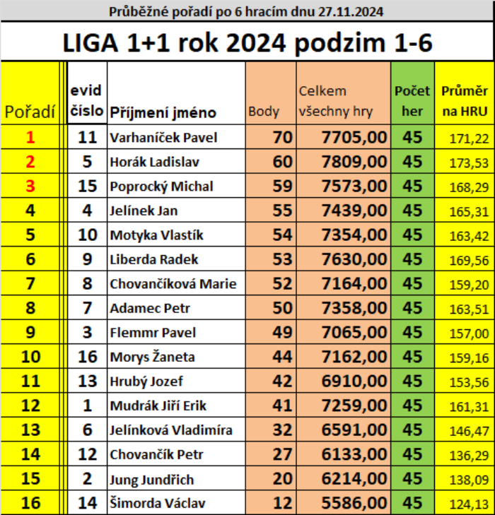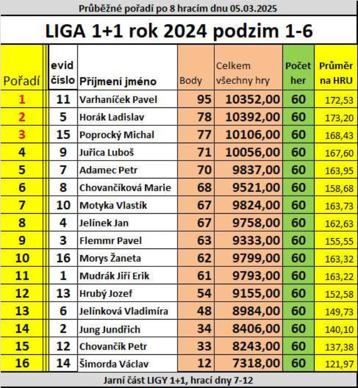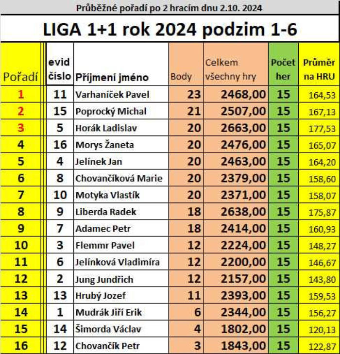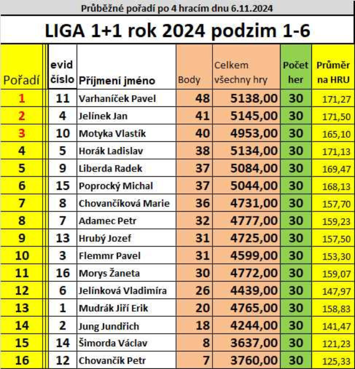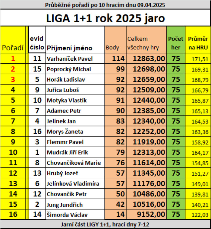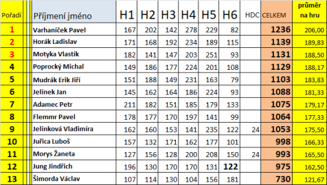 (211). Pavel Varhaníček měl průměr 173,38, ale jen 6 bodů.
