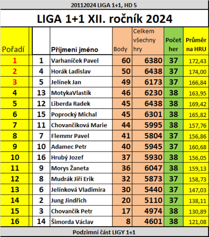 kopírují pořadí LIGY 1+1 téměř přesně a jen někteří se trochu propadli. Vzhledem k cenám herny a