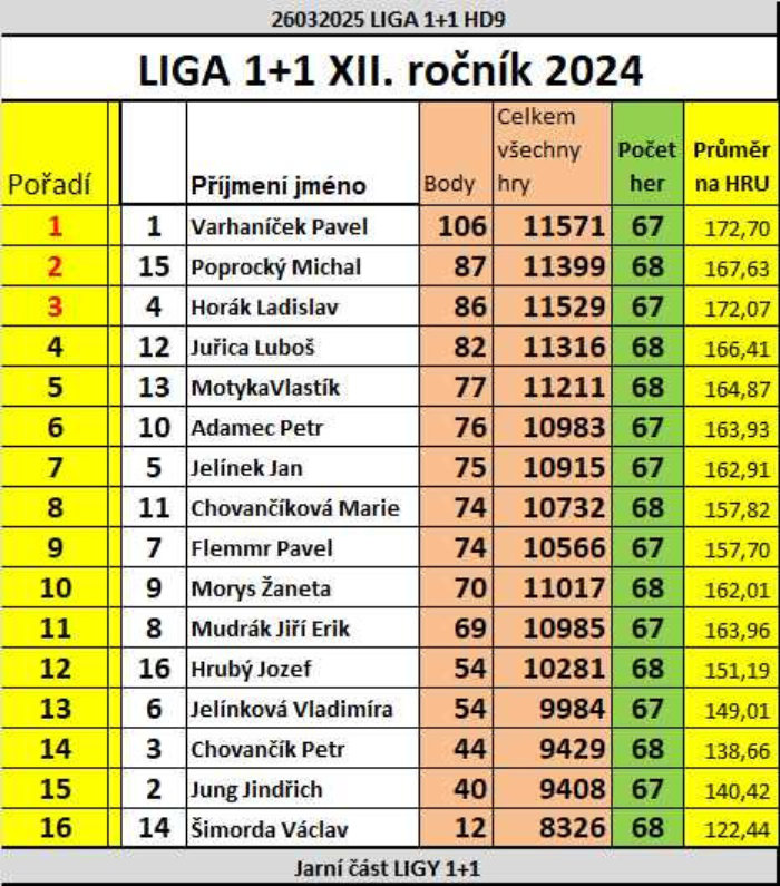 pozici hned za Pavlem Varhaníčkem, lídrem soutěže. 14 bodů