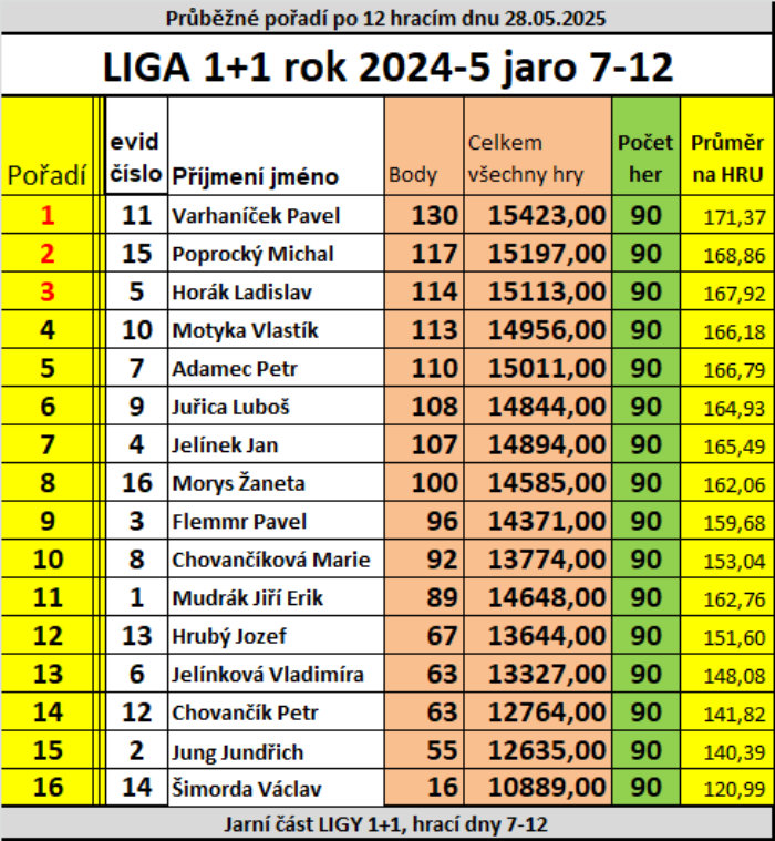 28.5.2025 bude poslední, dvanáctý hrací den 12. ročníku LIGA 1+1.