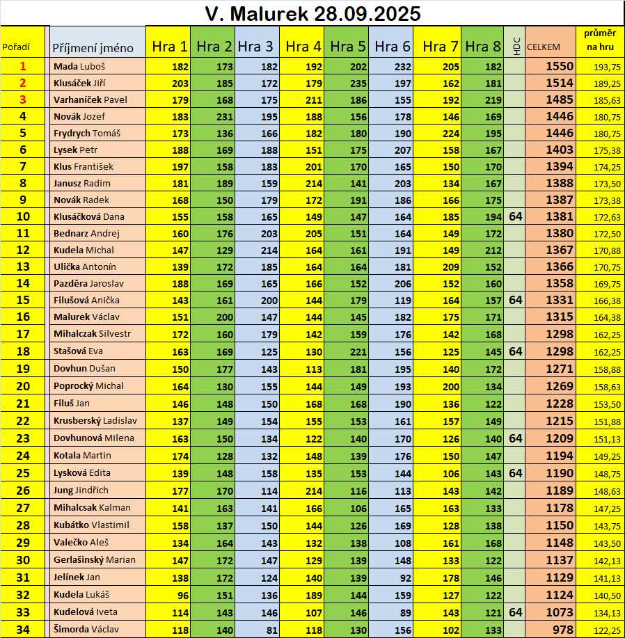 28.92025 se konal Svatováclavský turnaj v SKY bowlingu v Ostravě-Porubě.